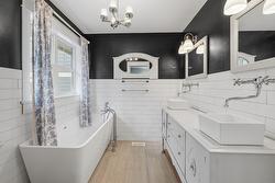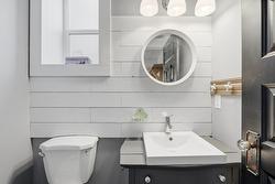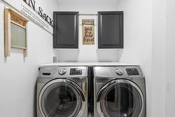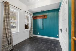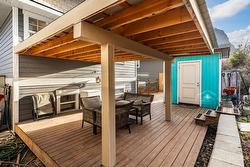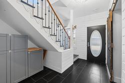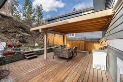 Upstairs, the private sanctuary of the Primary Bedroom Suite awaits. It boasts dual closets and a luxurious, spa-like bath with two separate vanities and a deep soaking tub for ultimate relaxation. Down the hall, a second well-appointed bedroom, a three-piece bathroom, and a conveniently located laundry room complete the beautiful second level. Outside, discover your peaceful, private oasis. The backyard features a spacious cedar entertainment deck with a covered seating area, perfect for year-round enjoyment. A significant and rare amenity for this neighborhood, the property offers generous parking for your vehicles plus dedicated space for an RV or boat.