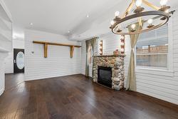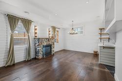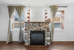 Relax and entertain in the inviting main living spaces, featuring lofty 9-foot ceilings that enhance the natural light. A cozy gas fireplace anchors the living room, flowing effortlessly into the casual dining area. The main floor is completed by a versatile third bedroom/den and a chic two-piece bathroom.