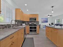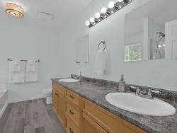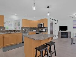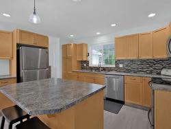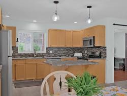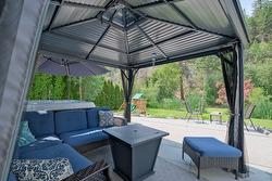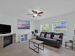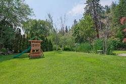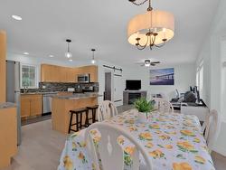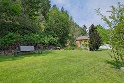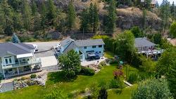 Set along the iconic Bottleneck Drive, this lovingly maintained home blends comfort and character with a location that feels truly magical. Just minutes from celebrated wineries, the scenic KVR Trail, and downtown Summerland, the property also backs directly onto the historic Kettle Valley Steam Railway, creating a picturesque setting that feels straight out of a Hallmark movie. Inside, soaring 19-foot vaulted ceilings fill the living room with natural light, while the upper level offers three inviting bedrooms that overlook the bright and airy space below. The heart of the home is its open-concept kitchen, dining, and family rooms, where large windows frame the outdoors and a walk-out door provides easy access to the backyard. It’s a space designed for connection—whether you’re preparing meals, gathering around the table, or enjoying quiet evenings together. The main level also offers wonderful flexibility with a private office or guest area, complete with its own entrance and a built-in wall bed—an ideal retreat for visiting friends or a quiet place to work. Outdoors, the backyard feels like a private sanctuary. A gentle creek winds through beautifully landscaped gardens with natural rock accents, while a spacious patio invites you to relax in the hot tub, host summer barbecues, or simply unwind in the peaceful surroundings. Thoughtful updates, including modern HVAC, newer appliances, newer flooring, and fresh paint, mean the home is as practical as it is welcoming.
