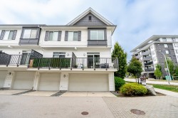 Location & Convenience of KINGS LANDING II built by Dawson & Sawyer hosts this END UNIT 4 Bedroom / 3 Bathroom / 1600 sq ft townhome with FRONT DOOR ENTRY on MAIN LEVEL. Modern finishes including quality laminate flooring; open concept kitchen with lots of cabinetry, oversized quartz island & SS appliances; step down living room to walk out spacious balcony on main. Family floorplan with Primary bed/ensuite and additional two bedrms with laundry upper level plus handy one bedroom (or rec room) with full bathroom on the lower level with a double side by side garage! Bring your two furry pets and rentals allowed. Just outside complex is transit stop that is minutes away from the main KG Skytrain station- Close by to Bear Creek Elementary, shopping, Bear Creek Park, etc etc!!
