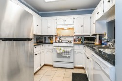 White Rock Village: spacious ground floor corner unit with great natural light. Many updates including ceramic kitchen flooring & back splash, newer dishwasher & LG fridge, sink & tap.Gas cooktop for the chef in your family! Living room features new thermo blinds, wood flooring & cozy gas fireplace, with access to spacious patio with garden. Updated bathrooms and recently painted interior. The building has been extensively retrofitted including rain screening with hardy plank siding, windows, doors, balconies & roof. Great amenities include recreational room, sauna, huge deck on 3rd floor, exercise room and library & beautifully landscaped courtyard. No smoking complex and no pets, age 55 plus. Central to shopping in Ocean Park AND White Rock with transit & convenience stores nearby.