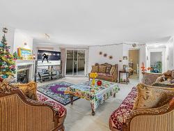 Spacious Ground Floor Apartment | 2 Bed 2 Bath | 1,463 Sq.Ft. | Originally Kept & Well-Maintained. This bright end unit overlooks a peaceful courtyard and offers two parking stalls. The Private Concept kitchen and breakfast area flow into a large living and dining space with a cozy gas fireplace and access to a covered patio—perfect for entertaining. The spacious primary bedroom features a walk-in closet, a luxurious ensuite with a soaker tub and shower, plus private patio access. Great location—close to shopping, transit, and Kwantlen University.