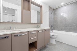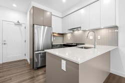 Welcome to Silva 1! This ground-level, 1 bedroom and 1 bathroom features a spacious ground-floor patio offering easy access to nearby parks and bus stops, perfect for relaxation or hosting. Enjoy refined cooking on a gas stove, complemented by premium finishes throughout — stainless steel appliances, quartz countertops, wide-plank flooring, in-suite laundry, and an elegant double-sink bathroom. Located in the heart of East Newton, you’ll be within walking distance of shops (Costco, Superstore, Canadian Tire, restaurants, and schools. The building features numerous amenities: a beautifully designed courtyard, fully equipped fitness center, co-working area, social lounges, community kitchen, and more. This is the perfect home for first-time home buyers, young couples or investors!
