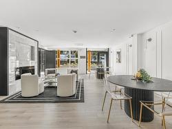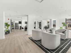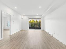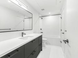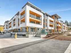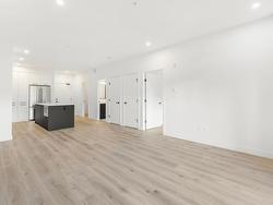 Welcome to Odyssey by the award-winning Forge Properties! This stunning 2-bedroom home features an open-concept layout with full-sized stainless steel appliances, sleek black matte plumbing fixtures, and elegant white quartz countertops complemented by a white tile backsplash. Enjoy the privacy of your own balcony and the warmth of wide-plank wood-grain laminate flooring. Additional highlights include a Whirlpool washer & dryer, rough-in for air conditioning, and a designated parking spot with a storage locker. Residents have access to a state-of-the-art Health & Fitness Centre with a sauna and fully equipped lounges. Ideally situated just off King George Blvd & 152nd St, this home offers convenience with nearby amenities, transit, highways, parks, schools, and a short drive to the beach!