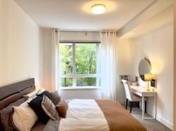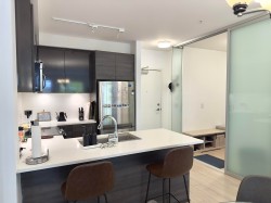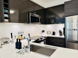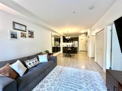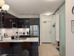 Experience spacious living in the heart of Surrey at The Verve! This bright 1-Bed + Large Den (719sqft) features 9' ceilings, a modern kitchen with quartz counters, full-size stainless steel appliances, large island with breakfast bar, and under-cabinet lighting. The oversized bedroom includes his & her closets and dual-access bathroom. Enjoy in-suite laundry and a west-facing balcony perfect for relaxing or BBQs. Includes 1 underground parking & storage locker. Building amenities: gym, yoga, billiards lounge, guest suite, and secure entry. Steps to King George SkyTrain, SFU, Central City Mall, parks, hospitals & restaurants—must see! Open House: Sat. & Sun (Nov.15&16) 2-4pm.