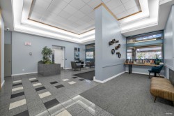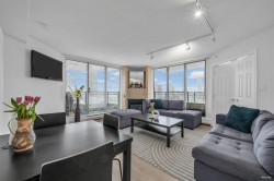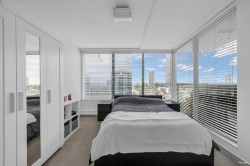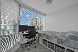Welcome to this well maintained 1 bedroom + den home at Cornerstone, where the den offers flexibility as a second bedroom or private office. Measuring 828 sq. ft., this sun-filled corner unit features expansive windows throughout and two balconies. Updates include new flooring and new paint. Exclusive building amenities include an outdoor pool, hot tub, fitness centre, amenity room/games room and secure underground parking. This unit includes 1 parking and 1 storage. Situated in a central location just steps from Gateway SkyTrain Station, you're moments from shopping, dining, and everyday conveniences. This is an exceptional opportunity for both first-time homeowners and investors seeking value in one of Surrey's most connected neighbourhoods.