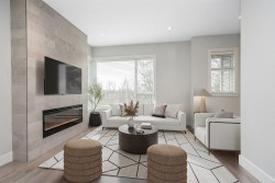 This beautiful 1723 sq ft END-UNIT, located in the SOHO complex in Grandview Corners, offers exceptional space, natural light, FACING Oak Meadows Park, and a PRIME LOCATION. Enjoy an oversized ROOFTOP PATIO with HOT TUB, featuring glass railings, stunning views, and unforgettable sunsets. Upstairs offers a 5-piece ensuite off the primary bedroom and a 3-piece ensuite off the secondary bedroom, located at opposite ends for privacy. The main floor boasts an OPEN CONCEPT living with extra windows, a fireplace, a powder room, and a large island perfect for entertaining. The lower level includes a bedroom/office perfect for a home-based business. Amenities include Gym, party room, theatre, playground and just steps to parks, Grandview Corners, Morgan Crossing, schools and commuting routes!!