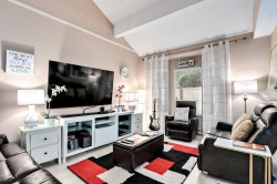 Steps from T&T, Guildford Town Centre, and top schools! Beautifully maintained 2Bd/1.5Bt townhome in the heart of Guildford. Features rich laminate floors, a bright kitchen with stainless steel appliances, white cabinetry, and a sunny breakfast nook. The open dining area flows to a fully fenced deck, perfect for BBQs or relaxing. Enjoy the airy living room with vaulted ceilings, abundant natural light, and a cozy fireplace. The primary bedroom offers walk-in closet and a private balcony. Upstairs storage room that can easily be converted into a third bedroom or office. Email for viewings (24hr notice). Still available.