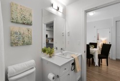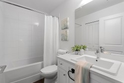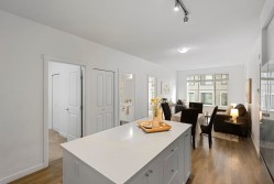 OH 2/14 2-4pm. Contemporary 3-bedroom, 2-bathroom residence offers 847 sq. ft. of expertly designed living space by Dawson and Sawyer. The bright, open-concept interior features soaring ceilings and expansive windows, leading to a private, tranquil balcony overlooking the courtyard. The gourmet kitchen is a chef’s delight, equipped with a large island, premium stainless steel appliances, quartz countertops, and extensive cabinetry. This home includes one secure parking stall and one storage locker for added convenience. Residents enjoy exclusive access to a gym, yoga studio, dog wash, daycare, and playground. Ideally situated near the future SkyTrain expansion, this highly walkable location combines immediate lifestyle convenience with exceptional long-term value.
