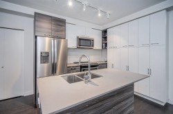 Welcome to this bright and spacious corner end unit offering comfort and convenience. Ideal for first-time buyers, families, and investors, this 3-bedroom, 2 full bathroom home features an open-concept layout facing a lush park, filling the space with natural light. Laminate flooring runs throughout, with a generous living and dining area, full-size stainless steel appliances, and quartz countertops. Bathrooms feature custom modern finishes. Recent upgrades include all new blinds, window and door screens, and remote-controlled ceiling fans in all bedrooms. Enjoy amenities such as a gym, yoga studio, clubhouse, and courtyard. Close to Guildford, Central City Mall, SFU Surrey, shopping, restaurants, and Highway 1. Includes 2 parking spots.