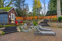 Exceptional Raymond Bonter–designed West Coast contemporary home, on a17,990 sq.ft. lot in Crescent Heights. The main flr offers dramatic architectural lines, abundant natural light & well-designed open living area. Gourmet kitc. opens to great room w/ retractable Nano doors, creating a seamless conn. to the outdoors. 4 beds, 5 baths, lg office, generous living spaces, 3 car garage & oversized driveway. Backyard transformation (2021–24) inc. engineered retaining walls, concrete/brick patios, professional landscaping, putting green, awning, fencing, natural gas outlets, hot tub & gas fire-pit area,water features/drainage (2023), A/C (2024), 200-amp service, updated deck, + front-yard brickwork & lighting. Private park-like setting. steps to Crescent Beach, reputable schools & all other amen