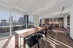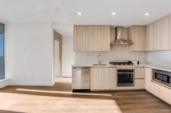 Discover elevated living at The Grand on King George, Surrey's first luxury high-rise combining premium residences with five floors of commercial space for ultimate convenience. Enjoy on-site coffee shops, medical offices, and daycare facilities, along with 23,000+ sq. ft. pf curated amenities on the sixth floor. These include a 24/7 concierge, an off-leash skypark, a VR room, a fitness centre, and an outdoor area with BBQ facilities, a park, and a playground. Each suite boasts custom millwork doors, built-in closet lights, central heating and cooling, WiFi-enabled Samsung stainless steel appliances, gas cooktops (included in strata), and more, blending style and functionality seamlessly.