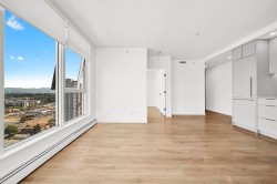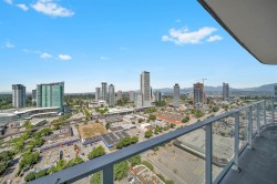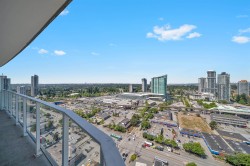 Experience elevated living in this modern 2-bedroom, 2-bathroom condo at Georgetown One by Anthem, built in 2022. Located on the 28th floor, this home offers stunning northwest views of the city and mountains from a large private balcony. The open-concept kitchen features a sleek L-shaped design with premium Bosch and Blomberg appliances. Smart layout with bedrooms on opposite sides for enhanced privacy. Enjoy unbeatable access to Surrey City Centre amenities—just steps to shopping, dining, SFU, KPU, and the SkyTrain. Residents have access to premium amenities including a lounge, outdoor theatre, co-working and study areas, fitness centre, yoga studio, and a pet park. Pets and rentals welcome. Perfect for urban living or investment!