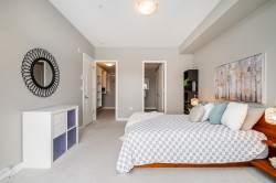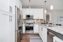Your next home at Waterstone awaits you! This spectacular 2 bed, 2 bath+den home overlooks the peaceful water features & lush landscaping of this award winning development. It has been beautifully designed with luxury finishes like white shaker cabinets, full slab granite counter tops, wide plank vinyl flooring, full-sized stainless steel appliances, on-demand hot water tap, and an abundance of in-suite storage. Included are TWO side-by-side parking stalls with with TWO private mini garages. Enjoy exclusive access to Waterstone’s resort-style amenities: indoor pool, fitness centre, 17-seat theatre, sauna, chef’s kitchen, and more!! This home is move-in ready, and just steps to Willowbrook Mall, shops, dining and future Skytrain—this one checks all the boxes. Come see it for yourself!