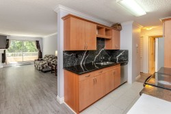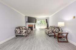 Welcome to the centrally located Parkwoods Fir complex. This nicely renovated 2-bedroom, 1-bathroom condo offers a clean and modern living space. The kitchen features updated cabinets, marble walls, quartz counters, a brand-new stove, and laundry machine. The unit also includes new laminate flooring, fresh paint, updated lighting, and smooth ceilings for a modern touch. Enjoy the cozy gas fireplace in the winter and relax on your private patio in the summer. This family-friendly building is close to shopping, restaurants, schools, parks, Surrey Memorial Hospital, SkyTrain, SFU, and Central City all within a 5-minute walk. Includes in-suite laundry, a storage room, underground parking, and access to shared laundry as well. Call for your Private showing.Open House Sat 20 2pm to 4p