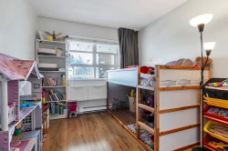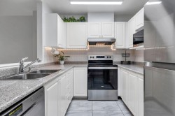 Spacious and bright 2 bedroom, 2 bathroom condo offering 1,066 sq ft of well-designed open-concept living with newer flooring and modern bathrooms. Functional, move-in ready floor plan, in-suite laundry and in-suite storage. Comes with two secure parking stalls. Well-managed and well-maintained building featuring a gym, sauna, wheelchair access, and gas included in the maintenance fee. Pet-friendly (with restrictions). Prime, central location, walkable, close to SkyTrain, hospital, Jim Pattison Outpatient Centre, shopping, cafés, banks, movie theatre, and Green Timbers Urban Park. Excellent value for first-time buyers or a strong investment opportunity.