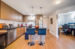 Spacious and sun-filled 1-bedroom plus large den in an unbeatable central location! The versatile den is perfect for a home office, guest room, or extra living space. Steps to top shopping destinations like Lululemon, Gap, Banana Republic, Whole Foods Market, and countless other urban conveniences. This bright, open-concept layout offers generous living space, ideal for both relaxing and entertaining. Enjoy the best of city living with transit, dining, and amenities just outside your door - perfect for professionals, first-time buyers, or investors. 1 PARKING and 1 UNDERGROUND STORAGE.