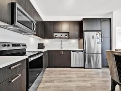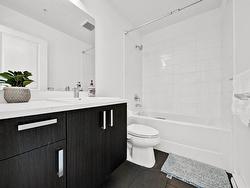 Welcome to Kings Landing by Dawson + Sawyer. Built in 2020 and move-in ready, this bright and spacious 2-bedroom, 2-bath + den (can be used as a third bedroom) + 2 parking unit is located in the rapidly growing Bear Creek neighborhood. The luxurious primary suite includes elegant quartz finishes and a generous walk-in closet. Additional highlights include a covered balcony and an oversized storage locker for your convenience. Situated just minutes from the future UBC Campus, SFU Surrey, SkyTrain station, parks and shopping, this home offers unbeatable location and lifestyle. A fantastic opportunity for first-time homebuyers or savvy investors!