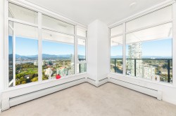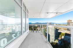Welcome to One Central! Priced below BC Assessment! This stunning 2-bedroom, 2-bath + Den corner unit includes 1 parking stall and a bike locker. Enjoy a bright, open layout with floor-to-ceiling windows, quartz countertops, stainless steel appliances, and a rare wraparound balcony showcasing 270° city and mountain views. Amenities feature a 44th-floor Sky Lounge, rooftop garden, gym, yoga studio, co-working space, dog park, and 24-hour concierge. Steps to SkyTrain, SFU, Central City Mall, restaurants, and Holland Park. Move-in ready with new home warranty! Open House 1:00 - 4:00 PM, Dec 20.