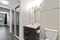 Ready for you to move in!!! Welcome to Access, a desirable community with beautifully landscaped green spaces & tree lined street. This one bedroom home is meticulously maintained and cared for. Open concept living with cozy electric fireplace and access to your deck with a view of the green space. Kitchen has plenty of storage and counter space including an eating bar and center island. Large windows provide lots of natural light. Close to Gateway Skytrain station, shopping & restaurants. Fantastic amenities room with fireplace and seating in the common area/party room, fully equipped exercise room, whirlpool & sauna. Perfect for your downtown commute or for a student at SFU, KPU or Douglas College. 1 parking & Locker