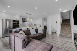 This 4bed/2.5 bath townhouse is centrally located close to amenities, transit and schools- all w/in walking distance-great location for families w/young children & elders. A great floor plan spread out over 3 floors offering flexibility &functionality. A gated complex offering safe community for families w/ young children. Complex offers a clubhouse, exercise room & sauna. Recent upgrades -brand new kitchen w/state of the art built-in smart appliances,new flooring,new window coverings,new paint,new pot-lights(smart lights).The 4th bedroom on the entry level can be used as a family room as well as it leads to the patio/back yard -a great place to enjoy summer BBQ & to entertain /let the little ones run around.