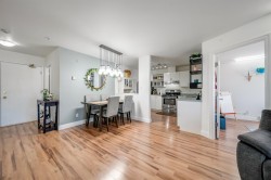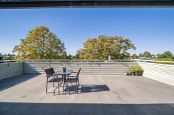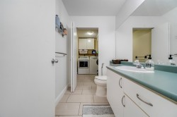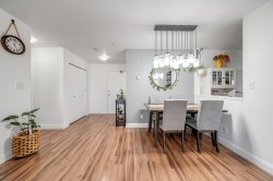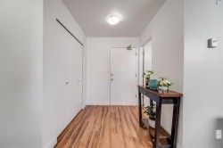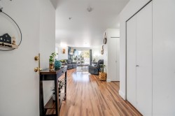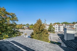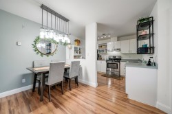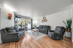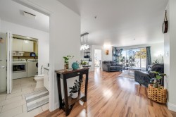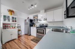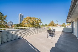 Penthouse Living! Top-floor corner unit with a massive 404 sq. ft. Balcony offering stunning city & mountain views. Bright, quiet, and centrally located a rare find! Beautifully planned layout with living room & gas fireplace, spacious kitchen, and open dining area. Large primary bedroom with deck access and ample closets; second bedroom with two corner windows. Laundry room with side-by-side washer/dryer & storage. Hot water & gas included in maintenance. Two premium side-by-side parking stalls and storage locker. Prime location with all essential amenities, schools, and transit just steps away. Open house Nov 30 - Sun 1:00-3:00pm