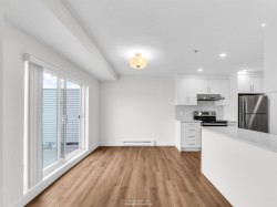 Fabulous Top-Floor Corner Condo at La Costa Green! Fully renovated in 2025, this stunning 2 bed/1bath home offers modern style and comfort. The 2nd bedroom has a closet! Enjoy a bright, open layout with new cabinets, new quarts counters, new stainless steel appliances, new floors, just painted, gas fireplace, and in-suite laundry room with side-by-side washer/dryer! The large spacious deck is perfect for relaxing or entertaining. Peek-a-boo mountain views too! Family-friendly building with parking, locker, guest suite, visitor parking, and clubhouse. 1 cat * 1 dog (max 15" to shoulder) allowed. Prime location close to shopping restaurants, amenities, transit, and Kwantlen University. Be the first to live in these renovations as they have just completed. Turn-key living at its best!
