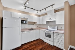 Welcome to this top-floor corner home in Midtown Villa, offering privacy and peaceful living in a quiet neighbourhood. Step inside to a bright open-concept layout that flows from the living and dining area to a well-designed kitchen, perfect for everyday comfort. Enjoy two large outdoor spaces—an expansive sundeck off the living room for relaxing or entertaining, plus a second private deck off the bedroom with a peek-a-boo mountain view. The spacious bedroom includes a walk-in closet, adding extra convenience. Just steps to King’s Crossing, restaurants, Costco, transit, and more—this is an ideal choice for first-time buyers or investors looking for comfort and convenience. Buy this home and enjoy my 1-Year Buyer Satisfaction Guarantee Program.
