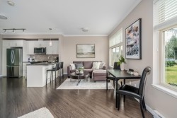 This Stunning Top-Floor corner unit in 'The Heights' offers breathtaking sunsets, and total privacy. Features include quartz countertops, stainless steel appliances, beautiful custom cabinetry, gleaming laminate floors, 12-foot ceiling with elegant crown moldings, and more. The oversized, energy-efficient windows allow natural light to flood the open floor plan, perfect for entertaining or relaxing. A large private Balcony/Deck with Mountain View provides a tranquil space to unwind, or enjoy the pathways through the beautiful large tree setting in the rear of the property. All this in a prime location, just steps away from the shops at Morgan Crossing and Grandview Corners, with easy access to Highway 99, White Rock beaches and the U.S. border. NOW AVAILABLE FOR IMMEDIATE POSSESSION.