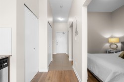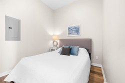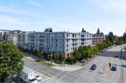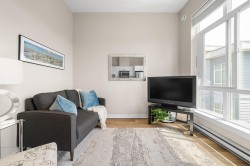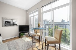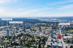 Top Floor 1-Bedroom with soaring 10ft ceilings & fresh upgrades! South-facing unit with floor-to-ceiling windows that fill the space with tonnes of natural light. Freshly updated with new vinyl plank flooring and paint throughout. Enjoy a peaceful view of the quiet courtyard from your living space. Amenities include a gym, courtyard with a kids' play area, and bike storage. 1 parking & 1 locker, EV -ready building & pet-friendly. Prime location with local businesses right at your doorstep. Just a 9-minute walk to Gateway SkyTrain Station for fast access to SFU, Central City Mall, parks, and more!