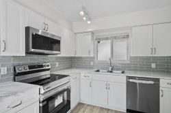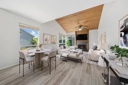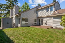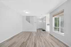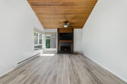 Step inside this GORGEOUSLY updated 2 bed 1 bath 1,005sqft townhome w/MASSIVE backyard located in the desirable GREENSIDE ESTATES! Vaulted ceilings in the open concept living / dining room let the natural light pour in while the WOOD burning fireplace gives you the homey, cozy feeling. Updated kitchen w/TONS of storage, countertop space & Brand New Appliances! Newly installed laminate flooring, fresh paint throughout, Outdoor living is a 10/10 Huge Private yard & over 200 sq/ft of deck space, generous sized rooms, WIC in main bed,4 piece bath, new hot water tank(3 years)& recently renovated clubhouse W/GYM, pool & Basketball Court! Great amenities but still low strata fee of $383/month! Click "VIRTUAL TOUR" link for more info, photos, videos & 3D floorplan! OPEN HOUSE SAT NOV 15 12PM-2PM