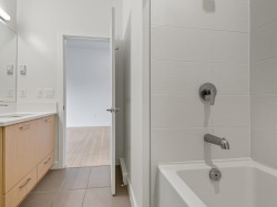 Penthouse!! 11 feet ceiling 1-Bedroom in Q5 – Designed for Contemporary Living. Welcome to your new home at Q5, a vibrant and meticulously planned community where comfort meets convenience. This brand-new 1-bedroom unit features 8-foot ceilings and expansive windows, creating a bright and airy ambiance throughout. The designer kitchen is a standout, boasting stainless steel appliances, quartz countertops, LED flush-mount lighting, and a stylish blend of wood grain and solid color cabinetry. Wide plank flooring and soaring ceilings elevate the modern aesthetic, sleek and sophisticated living space. Residents enjoy a comprehensive range of amenities, including: EV pre-wired parking, gym and yoga room, cozy fireside lounge, community gardens and close George Skytrain Station Parking & Storage
