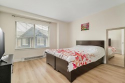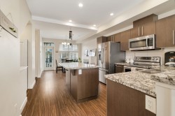 Augusta Walk at the top of Provinceton!! Bright & spacious 1,340 sqft townhome has 3 bedroom & 2 bathrooms up plus a powder room on the main floor. Fairly new paint & flooring, hot water tank (2022). Home features wide plank dark laminate flooring, granite countertops, stainless steel appliances, 9ft ceilings, built in vacuum plus more. Bright wide-open concept on main floor with large family room. Great location in Provinceton with easy access to highway and close to schools. Walking distance to proposed new skytrain coming down Fraser Hwy!!