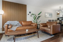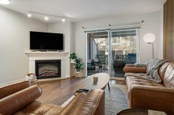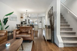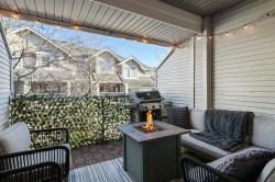 Excellent Clayton Heights location. Easy walk to Willowbrook, schools, parks, cafes & pubs, plus 2 future Skytrain Stations. Enjoy the quiet, tree-lined street from your front porch or relax with friends on the amazing, covered deck. Open concept plan with stylish upgrades including kitchen cabinets, appliances, built-in coffee bar, quartz counters & updated paint. A modern feature wall & fireplace hi-lite the living room. The primary bdrm has a 4-pce ensuite w/double sinks & the main bath is fully updated. There’s also a 2nd bedroom PLUS DEN or hobby area. 3-CAR PARKING – tandem garage and driveway (~20’) w/partial cover. Storage area in garage. Complex has guest parking but so easy to use your own gated access to the street - perfect for guests or groceries! Pets OK w/restrictions.