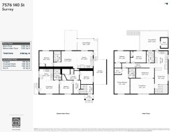 Welcome to 7576 140 St, Surrey BC V3W 5J8! Sitting on a generous 8,092 sq.ft. lot, this extensively updated home offers 6 bedrooms, 4 full bathrooms, 3 kitchens and 2 mortgage-helper suites. Remodelled in 1998 and fully renovated again in 2023 with over $150,000 in upgrades, including new bathrooms, flooring, kitchens, fixtures and paint. Features 2 laundries—one upstairs and one on the ground level. The spacious yard includes 3 apple trees, 1 plum, 1 fig and 2 grape vines. Close to parks, transit and schools; Frank Hurt Secondary and M.B. Sanford are in the catchment.