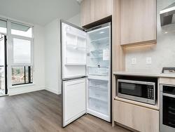 Modern Living at The Grand on King George. Stylish 1-bedroom + den, 1-bathroom condo on the 8th floor with 567 sqft of open living space and a 93 sqft balcony. Features include custom millwork doors, illuminated closet organizers, CENTRAL HEATING & COOLING, Wi-Fi-enabled Samsung appliances, GAS cooktops (included in strata fees), and efficient kitchen cabinet organizers. Enjoy 23,000 sqft of premium amenities: a private off-leash skypark, state-of-the-art fitness centre, VR room, outdoor BBQ and park area, playground, and 24/7 concierge. Conveniently located above five floors of commercial space with coffee shops, medical offices, and daycare at your doorstep. Less than 5 minutes’ walking distance from Gateway Skytrain Station, schools, and easy access to Highway 1.