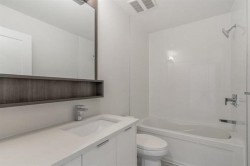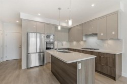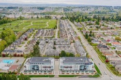 Welcome to AMSON SQUARE, located in the heart of East Newton. This 3 bedroom 2 bathroom north facing unit is one of the biggest in the complex with 1,176 sq.ft. + balcony. An open concept layout with modern finishing, 9 ft ceiling, pot lights, an energy efficient heat pump /air conditioning, laminate flooring throughout the living/dining areas & carpet in the bedrooms with zebra window covering. Kitchen features waterfall island, quartz countertops, high end S/S BOSCH appliances, gas stove and engineered quartz countertops. Outdoor amenities include roof top patio, BBQ area, party hall, rooftop play area for kids with beautiful mountain views. Just steps from local shops, restaurants, elementary schools, high schools & transportation. Hot water & Gas included in strata fee.