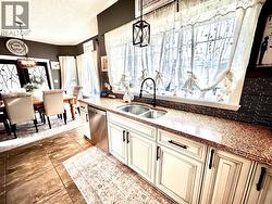 Looking for your dream escape in the mountains? Discover this stunning 8 bedroom home tucked away in the peaceful community of Tumbler Ridge, BC, where natural beauty meets modern comfort. Surrounded by trees and breathtaking mountain views, this upper-bench home offers the perfect blend of luxury and tranquility. Step through the grand entrance into a bright, open living room featuring large curved picture windows and a beautiful gas fireplace, the perfect spot to unwind after a day of adventure. The chef-inspired kitchen boasts granite countertops, abundant cabinetry, and a new gas range, seamlessly connecting to the spacious dining area. From here, walk out to the covered deck ideal for summer barbecues or cozy winter mornings with a coffee in hand or head out to a large second deck to soak in your soothing hot tub. Upstairs features a primary suite designed for pure relaxation complete with a window seat overlooking the snowy landscape, a walk-in closet, heated floors, a luxurious soaker tub, walk-in shower, and a double-sided gas fireplace shared between the ensuite and bedroom. Downstairs, the fully finished lower level offers a spacious family room with a cozy wood stove, two more bedrooms, and another full bathroom perfect for guests or a growing family. This property is a dream for anyone who loves their toys, featuring a triple-car attached garage and a double detached garage, both equipped with boiler in-floor heating. (id:27)