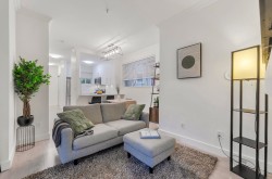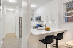 Well-located 630 sq ft 1 bed, 1 bath home in the desirable Fairview neighbourhood. This bright and functional residence features a fully renovated kitchen and bathroom, in-suite laundry, and a comfortable living space that opens to a very private 104 sq ft ground-level patio. The non street facing patio is secure, and quiet, making it ideal for relaxing or entertaining. Enjoy excellent access to Granville Island, Broadway, and Downtown, with SkyTrain and major transit routes nearby. Pet-friendly building with convenient bike storage. A great opportunity for 1st-time buyers or investors looking to own in a vibrant, walkable area close to shops, dining, and waterfront paths.