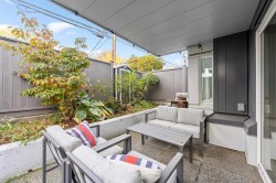 Discover this beautifully updated 2-bedroom + den ground-floor home on the quiet side of a friendly, pet-welcoming community just minutes from downtown. Thoughtfully renovated with modern finishes, it features a stylish kitchen with custom cabinetry, quartz countertops, and stainless steel appliances, plus a versatile enclosed den perfect for a home office or storage. Step outside to your spacious private patio—ideal for BBQs, entertaining, gardening, or relaxing in the open air—with room for your own storage shed. Convenient transit access, nearby shops, and restaurants complete this offering of modern urban living in one of Vancouver’s most connected locations. Call today to view your new home