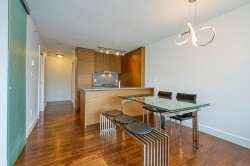 Vita at Symphony place, Award winning firm Merrick Architecture! This building is located in the heart of downtown where all the activities/entertainments are happening. MODERN 1 bdrm+den & solarium, full bath home. NW exposure looking out to Heritage building Orpheum theatre & city views. FUNCTIONAL open layout, separating living & dining area. Wide plank hardwood floors throughout. Gourmet kitchen come w/wood vaneer cabinetry, Caesarstone countertops, S/S kindred sink, AEG wall oven & cooktop, Liebherr refrigerator, Fisher Paykel dishwasher & much more. Fabulous amenities include gym, outdoor hot tub, children play area, resident & lounge, garden terrace/gaebo. Well managed building. 1 parking & storage locker included