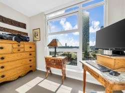 Sophisticated city living awaits at The Maddox by Cressey! This bright southeast corner home offers 2 separated bedrooms, 2 bathrooms, a den/office, and a large pantry in a smart, functional layout. Engineered hardwood floors, custom kitchen finishes, gas cooktop, newer Miele/Bosch appliances, California closets, and a built-in entertainment centre add style and comfort, while air conditioning and a heat pump ensure year-round ease. Enjoy 24-hour concierge, gym, sauna, party room, and kids' play area in this well-managed building, just steps to Fresh St Market, London Drugs, cafes, and the seawall.