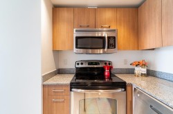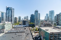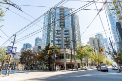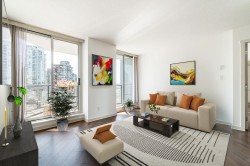 Fantastic opportunity at 1212 Howe by Wall Financial! This beautifully bright 2 bdr/2 bath residence features the highly sought after "08" floor plan. Thoughtfully designed open concept layout offers a seamless flow between the living & dining areas, while the bedrooms are intelligently positioned on opposite sides of the home to maximize privacy, each with its own full ensuite bathroom. The functional kitchen is equipped with stainless steel appliances & granite countertops; complemented by abundant in suite storage to keep your space organized. New washer & dryer. Step out onto the spacious covered balcony off the living area and enjoy lovely city views with glimpses of water. Exceptional Walk Score of 98, just steps from Yaletown, SeawaU, best cafes/restaurants, shopping, & bike lanes.