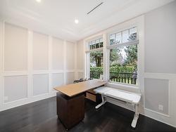 Nestled in prestigious South Granville, this 4,375 sq ft smart home features three ensuite bedrooms, a master suite, and a spa-like bathroom. The main level houses elegant living spaces, a potential piano room, and a gourmet kitchen with a chef's annex. The basement is an entertainment hub with a home theatre, karaoke, gym, sauna and steam room, complemented by two guest rooms. Outside, a private garden with a waterfall and a four-car garage enhances the luxury.