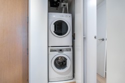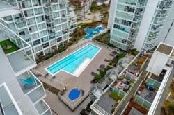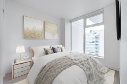 Welcome to Kensington Gardens by Westbank—an elevated 1 bedroom + den home offering northwest views of Downtown Vancouver, Burrard Inlet, and the North Shore mountains. Inside, enjoy engineered oak floors, floor-to-ceiling windows, and central A/C. The gourmet kitchen features Nobilia cabinetry and Miele appliances, including a gas stove, while the spa-inspired bath showcases quartz finishes and Duravit fixtures by Philippe Starck. Resort-style amenities include a heated outdoor pool, hot tub, sauna, gym, study room, BBQ courtyard, elegant party rooms, and full-time concierge. Secure underground parking included. With T&T, shops, cafés, restaurants, parks, schools, and SkyTrain nearby, this is one of Vancouver’s most connected communities. Freshly painted.