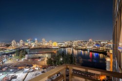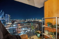 Bright 2 bed, 1 bath home at 33 Smithe St w/ smart layout and expansive windows that bring in natural light and city outlooks. Open living/dining flows seamlessly, ideal for daily living and entertaining. Well-appointed kitchen w/ modern finishes and ample storage. Comfortable bedrooms offer flexibility for guests, WFH, or growing needs. Enjoy resort-style amenities incl gym, pool, bowling alley & private movie theatre. Located in a vibrant waterfront neighbourhood mins to parks, seawall, shops, dining & transit. 1 parking.