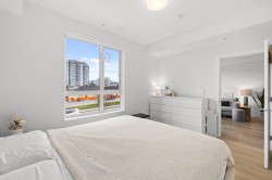 CLARENDON HEIGHTS – Bright 3 bed, 2 bath + flex corner home with stunning North Shore mountain & city views! Scandinavian-inspired kitchen features quartz counters with lots of space, double sink & full-size SS appliances. Open living/dining flows to a north-facing balcony perfect for relaxing or entertaining. All 3 bedrooms enjoy natural light & lots of privacy. Bonus flex space can be used as a Den or extra storage along with 2 storage lockers & 1 parking included. Building offers rooftop patio space, playground & amazing views. This home is move in ready and meticulously cared for like brand new all without the GST!