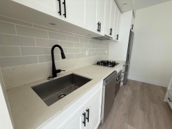 Welcome to Rail town. This newly renovated 1bdr and 1 bath condo is waiting for your finishing touches. Fantastic open layout. 9'ceilings and new laminate flooring through out.The gourmet kitchen has been updated with new appliances and hardware including a Gas cooktop and electric oven, fridge and dishwasher. Quartz counter tops and tiled back splash. Brand new cabinets through out.there is an out door communal space with a barbeque to enjoy anytime. Lots of amenities close by, restaurants, micro breweries and local shopping nearby.Parking may be available for rent.Storage locker #15 and a secured bike room.