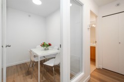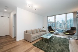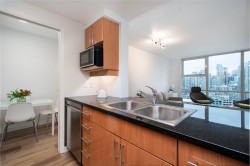 FULLY RENOVATED & ready to IMPRESS, this beautifully designed home features brand new wide plank flooring, fresh paint, updated lighting, a sleek backsplash, and a spacious spa like bathroom with new tile & vanity. Appliances are approximately 3 years old. The VIEWS steal the show, sweeping over Heritage Yaletown with exceptional distance & no awkward sightlines back into your home. Wake up every morning to city & mountain vistas that flood the suite with natural light & good energy. A smart, flexible layout offers space for a den, office, or dining nook, complemented by floor to ceiling windows & full size closets. LEVEL 2 EV charger in your parking stall. Marinaside Resort: Seawall, marina, waterfront parks, & Yaletown! Private, polished, and perfectly positioned!
