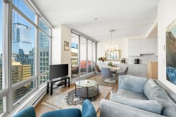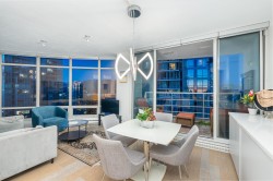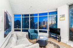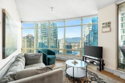 Welcome to The Palisades - Incredible Alberni Street location; close to everything! This gorgeous home is one of the exclusive higher floor units, enjoying higher ceilings & sharing the floor with only 3 other units. Spectacular City and Corridor Water Views, with floor to ceiling windows to enjoy them. Completely and Tastefully Renovated with Granite and marble countertops, custom cabinetry, Miele Appliances, roller blinds, rain showers, laminate flooring, and much much more! Very rare 3bed 2 bath floorplan in this square footage and in mint condition. Building offers fantastic amenities with a very elegant lobby and concierge. World Class dining and shopping at your doorstep, steps to the seawall, and a short stroll to Stanley Park. 2 Parking & 1 Locker.